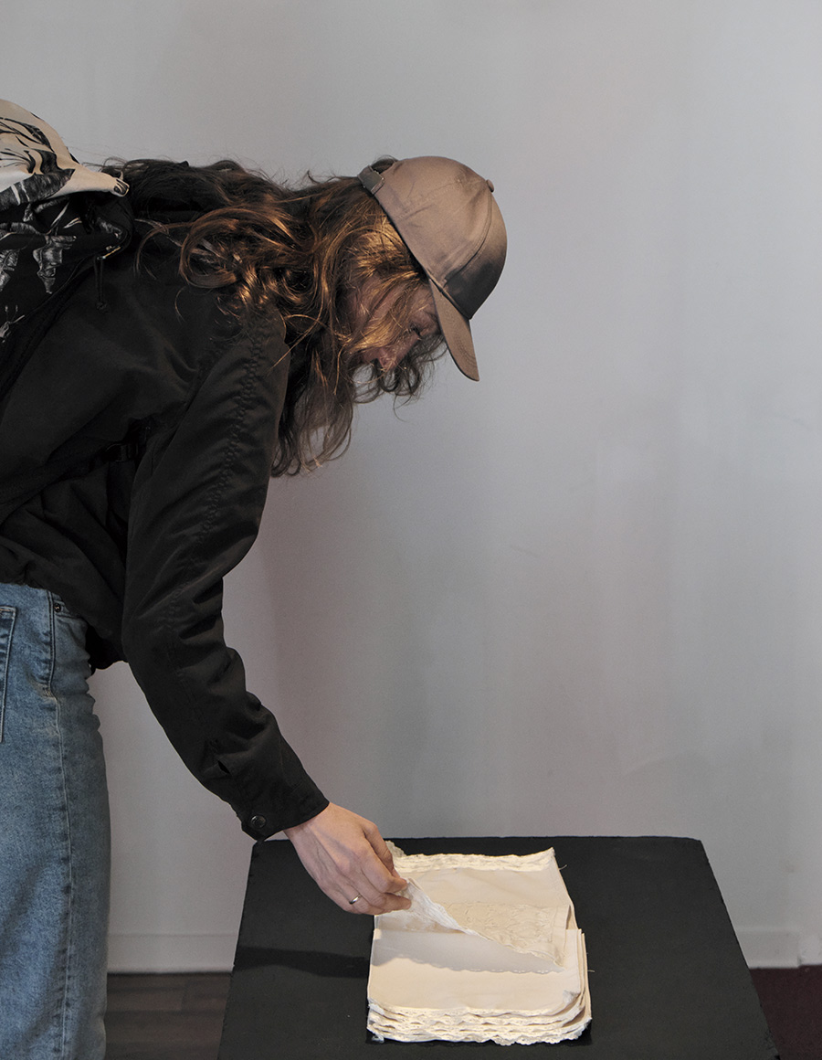 Varvara Sudnik is an artist from Belarus, mainly working with text and embroidery formats. Her artistic practice draws upon her experiences outside the art establishment and institutions. She does not separate her art from politics, addressing issues of exclusion, visibility, gender, labour, and trauma through her work. Varvara creates works with the optics of decolonisation of knowledge, questioning the established "canons" and "standards" of culture, art, and language.